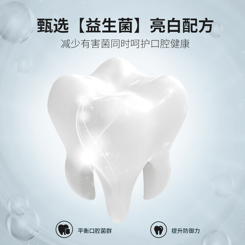含有益生菌素,能够清除食物残留清新口气,去除污垢的能力强,还有一股淡淡的薄荷香味。