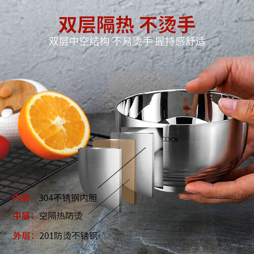 双层中空结构,不易烫手,握持感舒适,给你不一样的用餐体验;内壁镜面抛光,抛光成型,光洁靓丽,你值得拥有!
