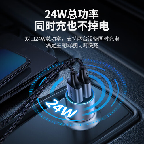 快充双口USB,满足主副驾驶同时快充,通用苹果华为小米手机平板!