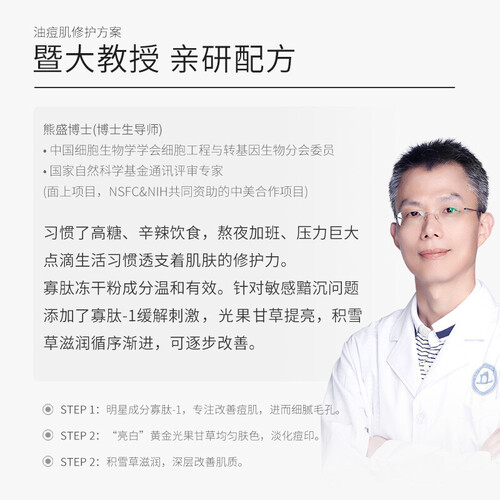 寡肽原液帮助淡化痘印,收缩粗大的毛孔,令肌肤光滑细腻;还可预防痘痘反反复复滋生,修护脆弱敏感肌肤。