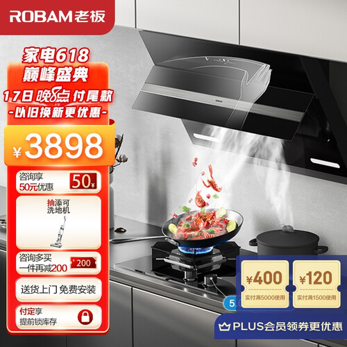 老板 免拆洗侧吸油烟机套装