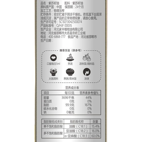 紫苏籽油有多种多样的食用方式,无论是直接饮用还是烹饪菜肴都很合适。其营养丰富,是你关爱家人的好选择。