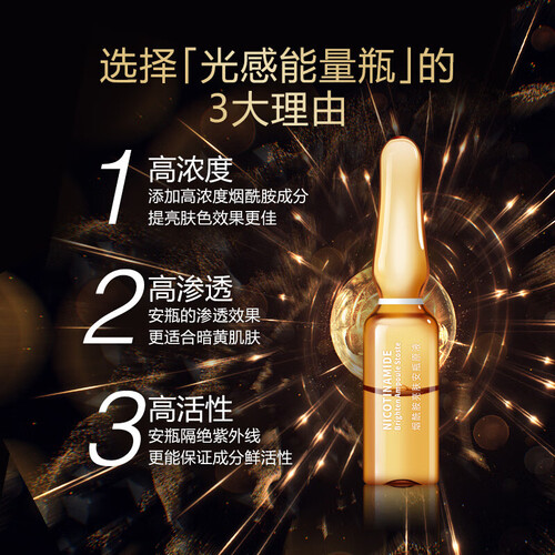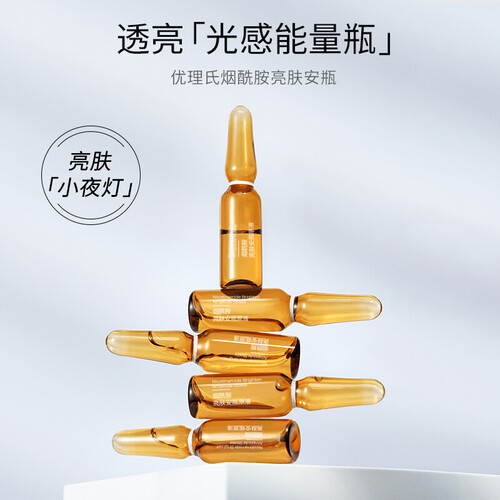 含有烟酰胺成分,能够提亮肤色,改善暗沉。密封安瓶,能够阻隔空气,更好的保持成分鲜活性。