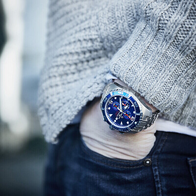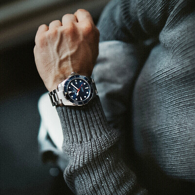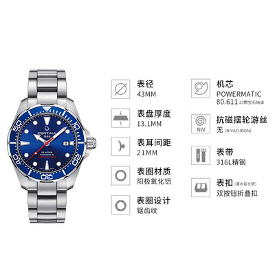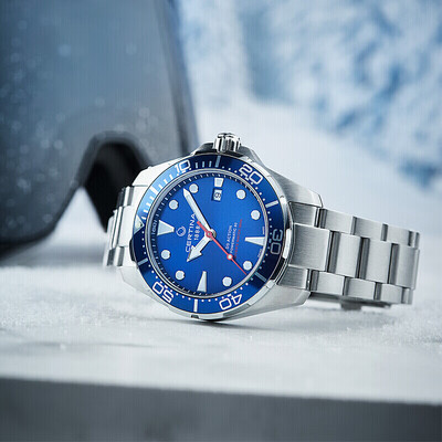 300米防水深度,与夜光蓝盘相结合,轻松满足潜水运动时的使用需求,不锈钢材质表带,坚韧耐用,佩戴清爽舒适不闷汗。
