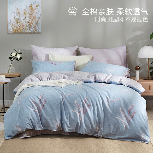 这款LOVO四件套,采用全棉面料制成,柔软的棉面料,透气性和舒适性都很好,可以随意机洗,一年四季都可以使用。
