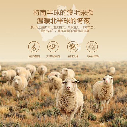 选用澳洲进口优质羊毛,并做了加厚的设计,包裹身体温暖舒适无压迫感。结合三重锁绒技术,长时间使用不易跑毛。