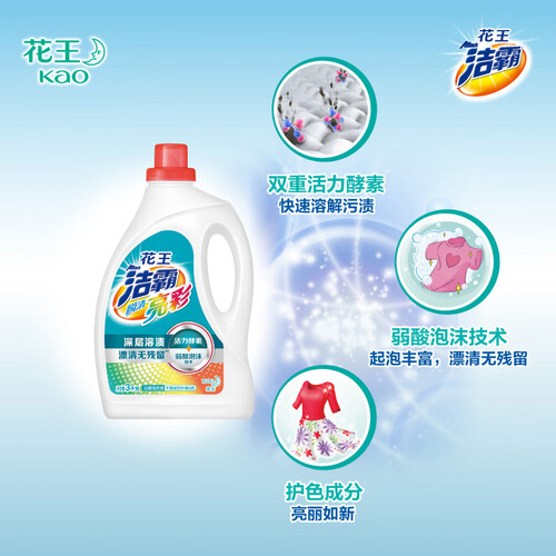 蕴含护色成分,可以保护织物色彩,让衣物亮丽如新。泡沫丰富又好漂洗,可快速洗净,不易残留,使用健康安心。