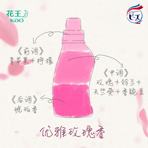 融入悠悠玫瑰花香,淡雅清新,洁后衣物持久留香,摆脱异味残留;蕴含衣物柔软成分,无需额外添加护理剂,洗后织物柔软贴肤。
