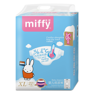 源自荷兰的米菲婴儿纸尿裤,采用热风面层及底膜,亲肤透气,让宝宝小屁屁自由呼吸,远离闷热感。