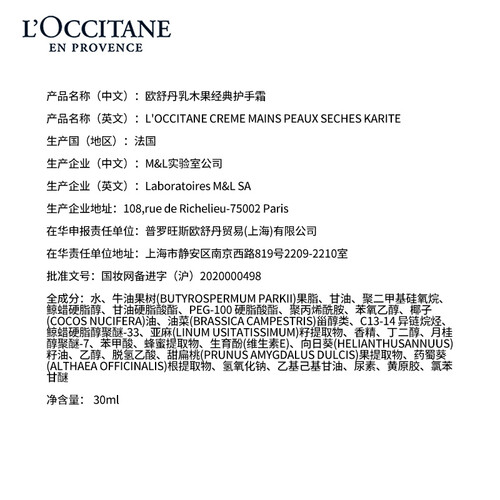 欧舒丹 乳木果经典护手霜