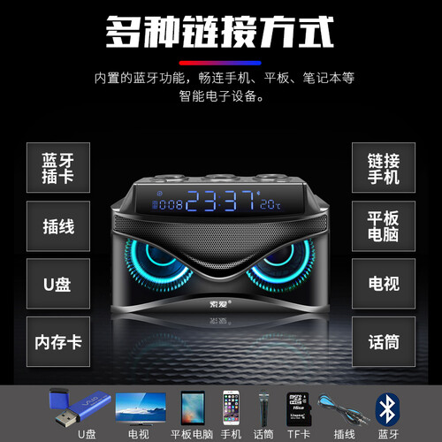 喇叭采用现代仿生设计理念,时尚有型的同时可伴随着音乐的频率带来不同的灯光。内置蓝牙功能,畅连多种电子设备。
