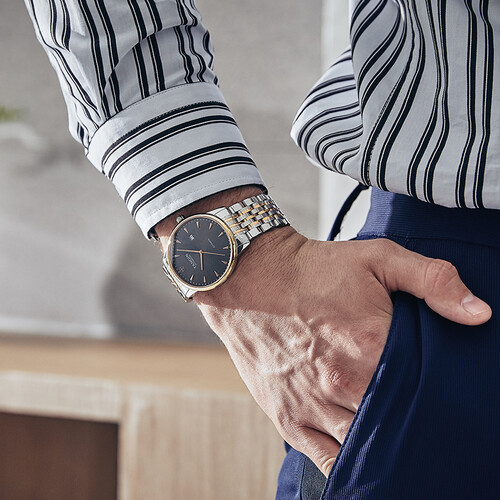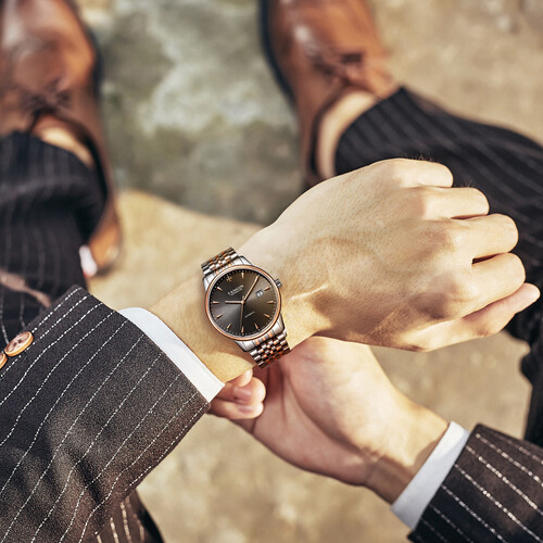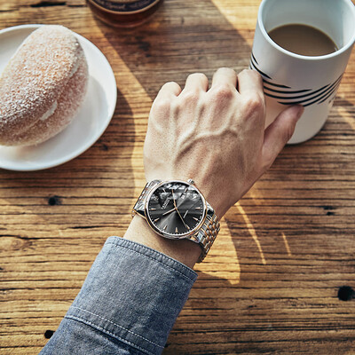 大气典雅中带着一丝质感的撞色手表配合剑形指针装饰,犹如现代骑士,沉稳阳刚,上手佩戴起来更能彰显出男性绅士魅力。