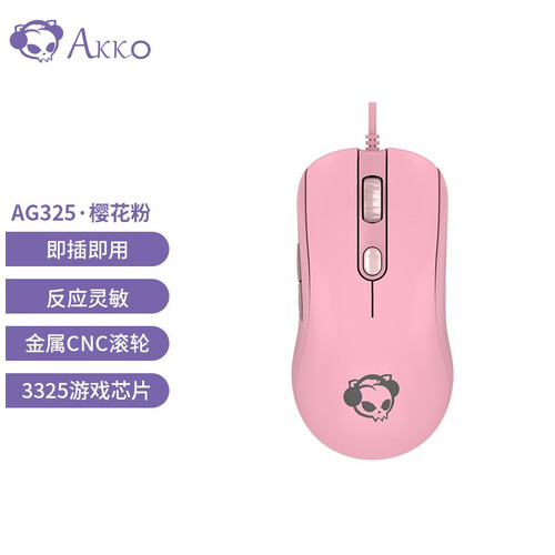 鼠标采用对称设计,左右手均可用,实用性较好。粉色色调搭配可爱印花图案,适合女生使用。搭载优质芯片,定位更加准确。