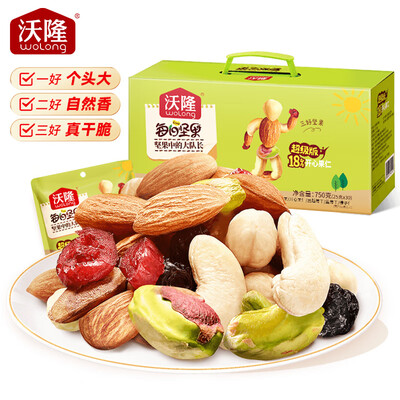 沃隆每日坚果礼盒优选原产地,采用原味烘焙轻加工,带来纯醇味道体验,感受酥脆,采摘即放入0度保鲜库。