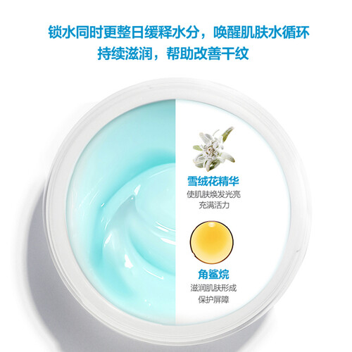 角鲨烷具有卓越的保湿效果,能有效滋润肌肤,深度补水同时锁住水分,令肌肤莹润双彩,雪绒花使肌肤焕发光亮,充满活力。