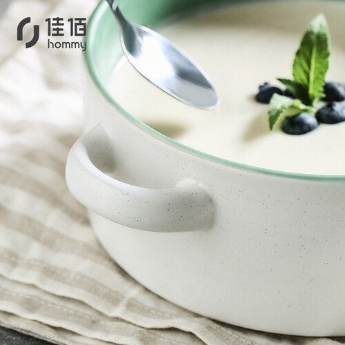 选用可降解的炻瓷烧制,环保健康,清洗方便。碧玉绿着色搭配芝麻釉工艺,赋予餐碗独特的美学,提升餐食仪式感。