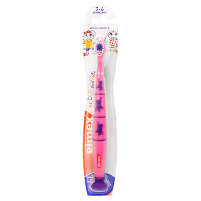 专为3-6岁乳齿研制,圆形牙刷软毛带来更加轻柔的洁净体验,预防蛀牙从认真刷牙开始。牙刷柄有导向线,适合多年龄阶段的儿童。