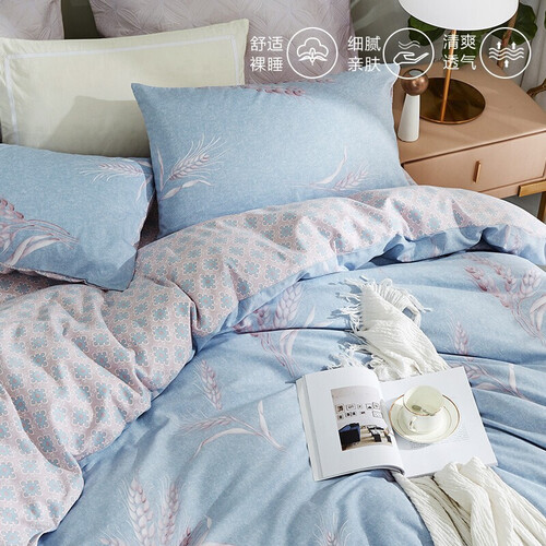 清新田园风的四件套,将麦穗印花融入其中,让人想到秋季丰收的喜悦,整体造型简单大气却不失优雅别致。