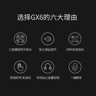内置四种拾音指向,可随心选择,满足直播和录音的需求。采用三个电容音头,提供清晰通透的人声,带来沉浸式的听觉盛宴。