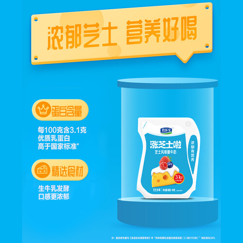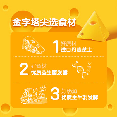 浓醇的酸奶碰撞咸香的芝士,全新组合给味蕾带来新刺激。鲜奶提炼的纯正芝士,让酸奶不只是美味,还多了一份安全。