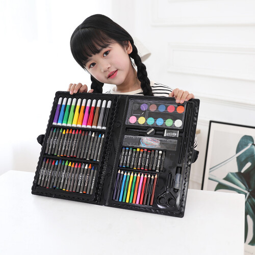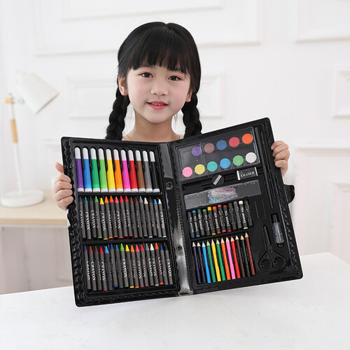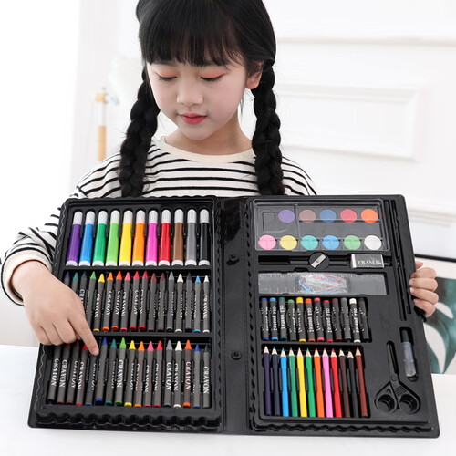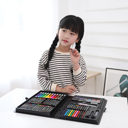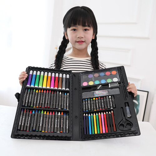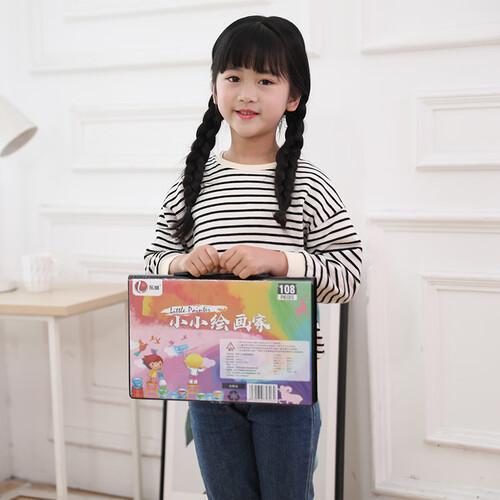 采用精致的套装礼盒设计,可以满足送礼物的需求。礼盒内包含油画棒、蜡笔、彩铅等绘画工具,满足不同需要。