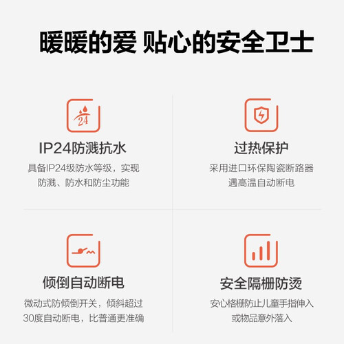 采用热幕帘设计,通过空气热流交换,为你提供整屋温暖,安全童锁功能,只为让你更安心。