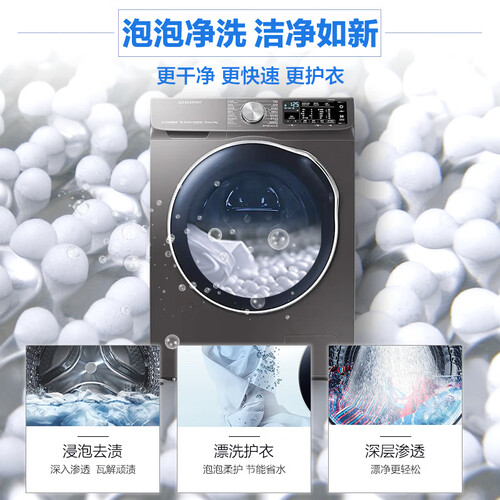 加宽内筒的采用,有效增加了摔打距离,洗涤更干净。45°门把手的设计,便于开启门窗,拿取衣物省心不费力。