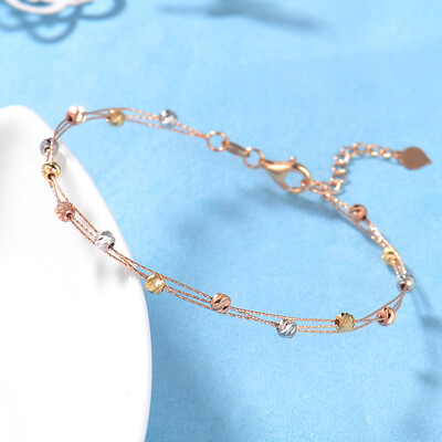 三种不同颜色的珠子搭配,更有时尚感,给人一种仙气飘飘的感觉。简约的圆珠手链,双层造型不显沉闷,自带垂坠感。