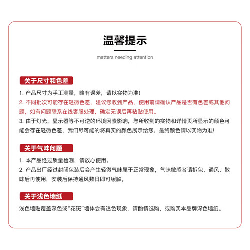 操作简单方便,背面带有胶水,撕开底下的纸就能粘上。加厚材质既防水又防潮,细节纹理清晰自然,色彩柔和百搭。