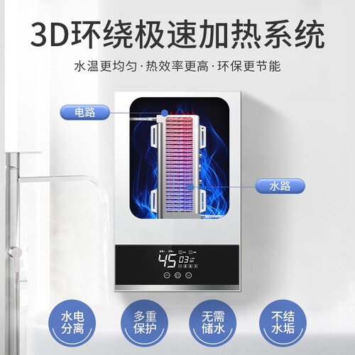 水电分离,防漏电更安全,开启美好沐浴新体验。3秒速热,无需漫长等待,及时享乐。精准控温,随心调整舒适温度,懂你更贴心。