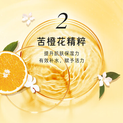 苦橙花精粹融合六种维他命成分,赋予肌肤弹性与更多的活力。啫喱质地更加轻盈,补水效果明显,有效改善肌肤问题。
