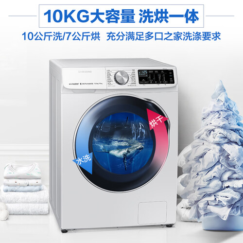 内部搭载了10公斤超大容量,满足了多口之家的洗涤需求,并且水冷凝式烘干,可以使衣物均匀穿透。