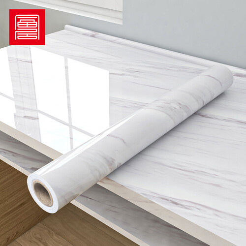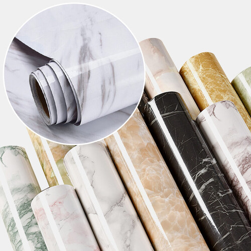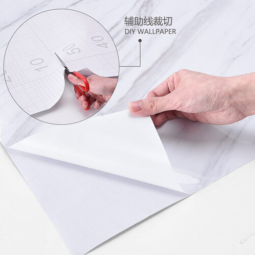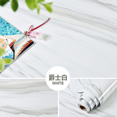 这款仿大理石纹贴纸采用pvc材质,防水防油易清洁。材质厚实耐磨,同时不容易翘边,紧紧的贴合墙面。