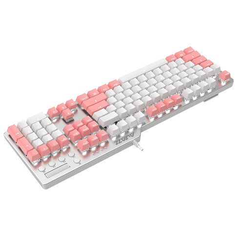 键盘上有四个指示灯,键盘大小写是否开启等一眼就可以看出来,十分方便。双色键帽不容易磨损,长时间使用也能保持质感。