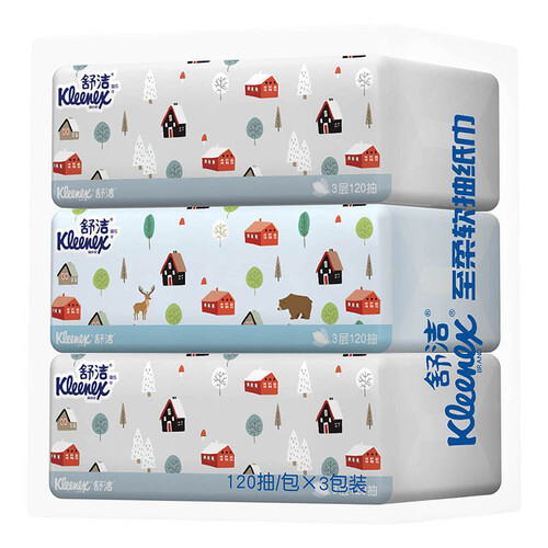 精选北欧优质极柔长纤维,触感非常的舒适。采用发展近百年的交织工艺,纸巾紧密强韧。包装印有北欧元素印花,非常好看。