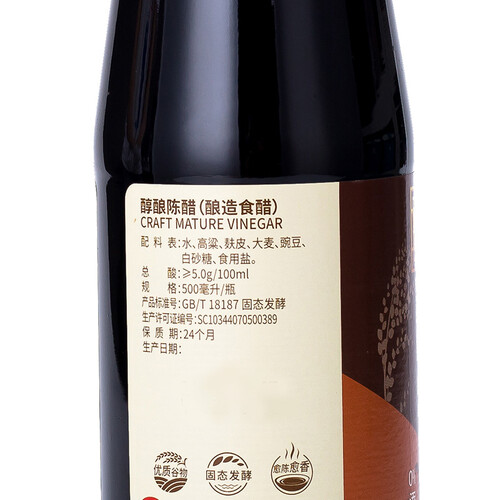严选多种优质谷物酿造而成,自带粮食的清香,且蕴含多种营养成分。搭配传统工艺制作,使得陈醋拥有了更为地道的口感。