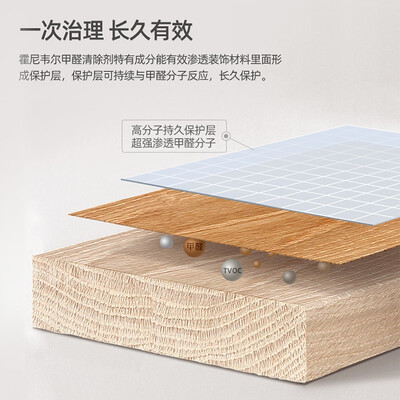 全天候除醛,拒绝甲醛侵害。采用分子渗透技术,无二次污染产生危害。安全无毒无刺激,守护家人健康。持久保护层,带来长久保护。