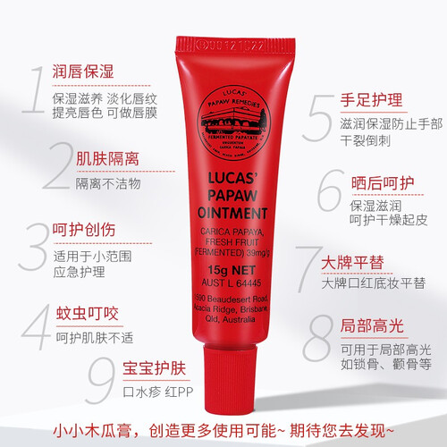 这款润唇膏含木瓜蛋白酶可以增加皮肤抵御外界的能力,石蜡减少水分流失,矿质成分补水。