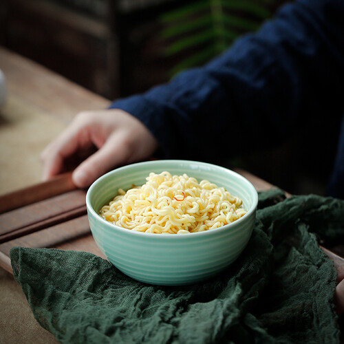 选取中式风格,手工精作,加上碗底加高,不容易烫伤,外观采用螺纹设计,既厚实稳重又端拿舒适,内壁平滑细腻,易于清洗。