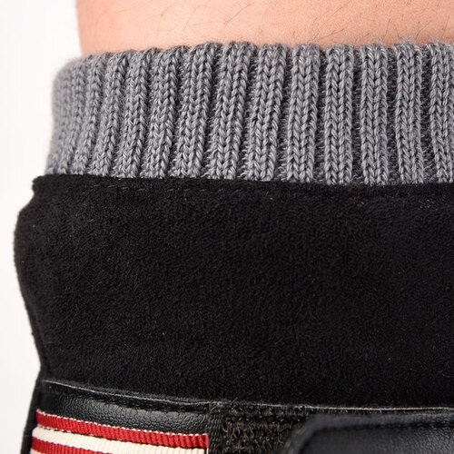 手套手腕处设计有魔术贴腕带,可以灵活调节手腕的宽松程度;袖口采用毛线编织工艺,形成拼接工艺,具有层次感和美观性。