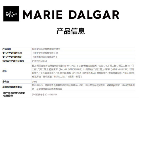 玛丽黛佳 牛油果植萃卸妆湿巾