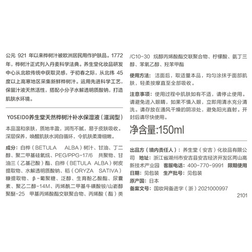 天然桦树液提取,不额外添加一滴水,使用帮助水润嫩滑肌肤。科学配方打造,无添加刺激成分,敏感肌可安心使用。