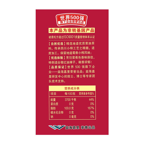 原料选用上乘产区非转基因菜籽,采用物理压榨的制作工艺加工而成,更大程度的保留了菜油的原香,适合日常家庭炒菜食用。