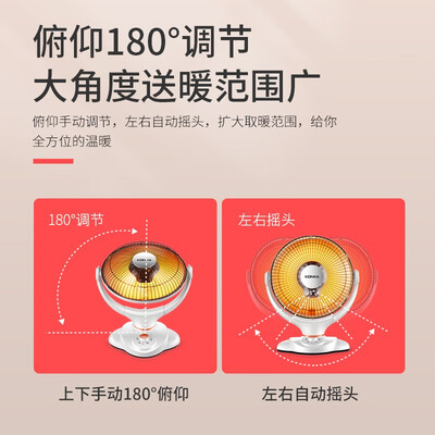 采用卤素管发热体,配合晶格反射罩使用,升温速度更快,取暖无需苦等。手动调节俯仰角度,取暖范围随心控制,方便灵活。
