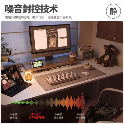 优选乐歌自主研发的电机,升降平稳不卡顿,带来更佳使用体验。49分贝低噪设计,操控静音,不扰家人休息。