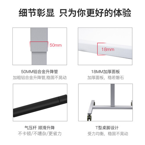 由一体成型的铝合金升降管支撑,结构稳固,坚实耐用。底部设有万向滚轮,移动灵活,静音不打扰,且不伤地板。