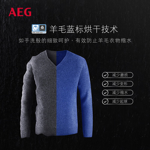 羊毛蓝标烘干技术,在烘干过程中,有效减少羊毛制衣物的磨损变形。自感负载大小,自动生成适合的烘干程序,省心省力。