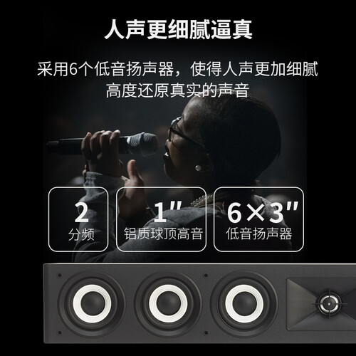 内置六个低音扬声器,带来澎湃震撼的低音。搭载铝质球顶高音扬声器,能减少失真,使得音质真实平坦。