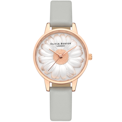 采用3D立体浮雕盘,精致惹眼,轻松扮靓丽人日常穿搭,配牛皮表带,舒适贴合手腕无刺激。防水表身,无惧日常生活用水。