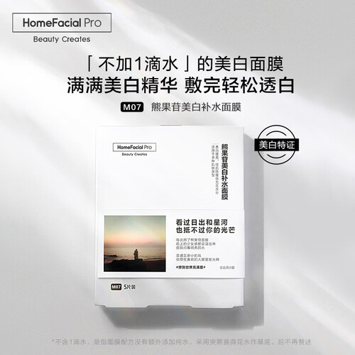 熊果苷成分,能够做到温和美白肌肤,调理维持平滑弹嫩。膜布轻薄透气好吸收,牢牢贴合,不易闷痘保持水润。